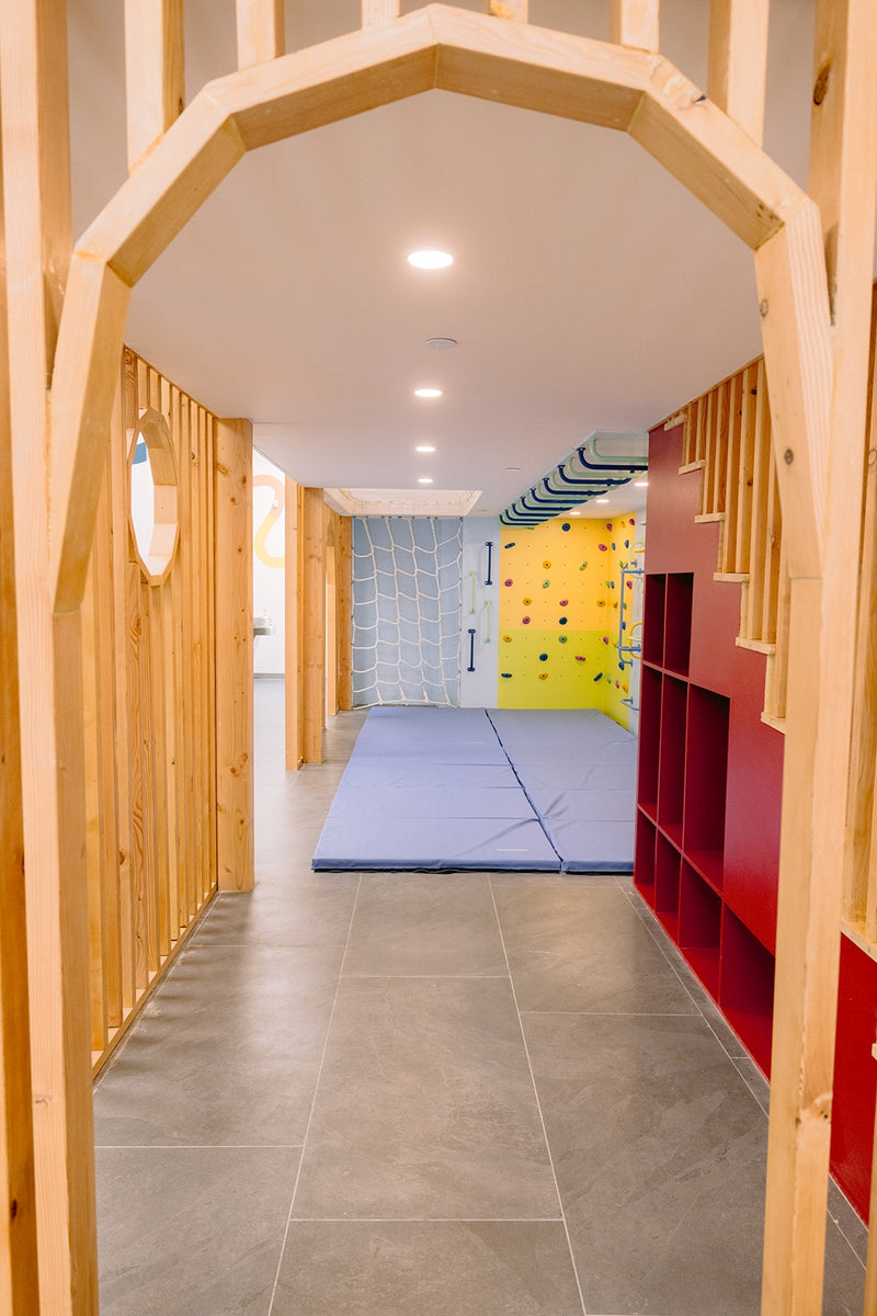 This after-school and weekend drop-off facility wanted a standout feature that would set it apart from competitors and capture children’s imaginations. Ako Playrooms designed a bespoke play loft spanning 8.5 metres, with climbing, hideaway, and performance elements woven into its structure. Every detail was considered for safety, durability, and flexibility, while still delivering a bold aesthetic statement. The result is a multifunctional centrepiece that supports active, creative, and social play — embodying Ako’s philosophy of purposeful play and creating a space children are excited to return to again and again.